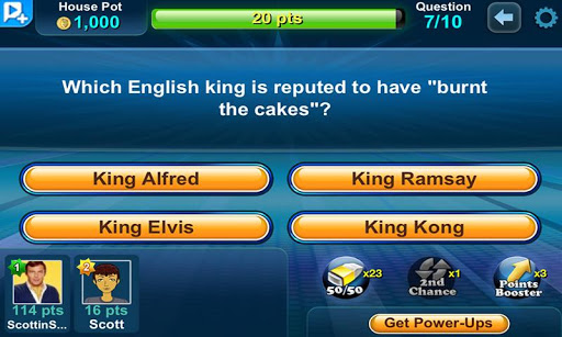 Challenge your friends as you race against the clock to see who comes out on top! Play head to head or in groups up to 4, as you answer general knowledge trivia question. See who reigns supreme amongst your friends! And don't forget, the winner takes the pot!