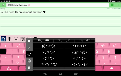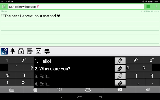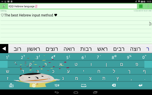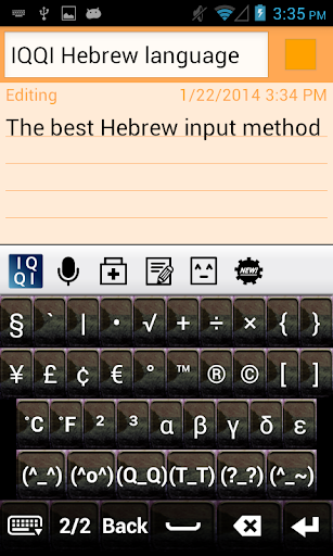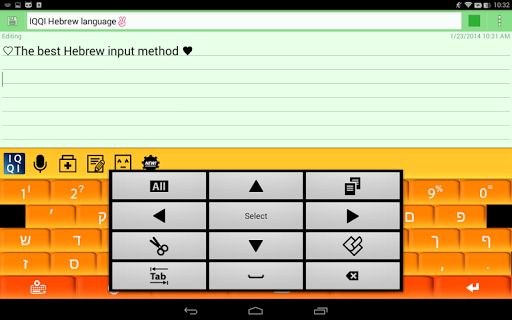 "IQQI - Hebrew Keyboard" is an enhanced Hebrew virtual keyboard application.