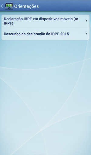 Aplicativo da Receita Federal do Brasil destinado aos declarantes do Imposto de Renda Pessoa Física. Nessa versão do APP IRPF estão disponíveis os seguintes serviços: