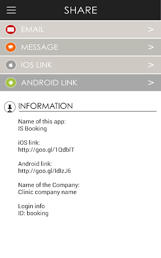 It is a general booking system app. What you need to do is to fill in the information through our website. Then Your customer can search your company name through this app and do the online booking easily. All the customer booking information will show through your account in our website. Also you can use this app as the simplest method to share your company information, product, opening hour to your customer. Not only a simple booking system but with many useful functions to support. It is easy to create and use. Come and try it!!