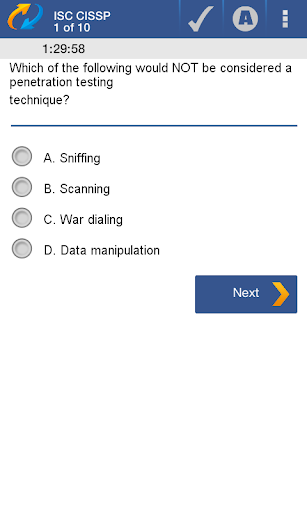 This free app includes 10 questions and answers from ISC CISSP exam, with additional questions available for download. As these questions come from real ISC CISSP exams and are verified by reputable industry experts, this app gives you an insight to a full ISC CISSP exam simulation, which ensures that you pass your CISSP exam and become a Certified Information Systems Security Professional from the first try.