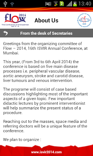 The Indian Society of Vascular & Interventional Radiology (ISVIR) has been floated to provide a platform for exchange of information regarding catheter-based radiological procedures. As part of this initiative an annual conference will be held on the first week of April(2014) from 3rd to 6th.