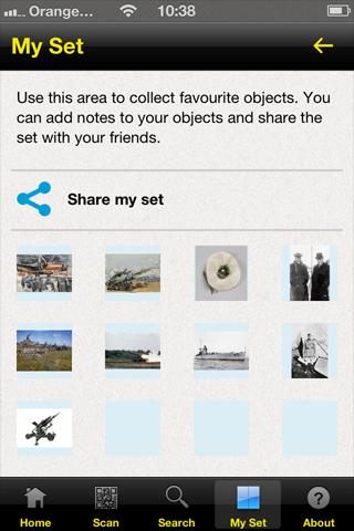 The IWM Scan and Share app lets you discover and tell your own story about objects you find in the Imperial War Museum's collections. You can use this app to create and share your stories, memories and experiences. You can also search through our objects and make your own collection.