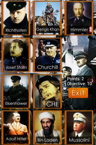 The game has several other personalities of the ancient wars like Mussolini, Churchill, Stalin, Bin Laden, Eisenhower, Napoleon, Richthofen, Lenin, Himmler, Rommel and even personalities of the war that are not as well known as simple soldiers like Almond, Ben Lear, R Louis, Gilligan, E. Hardin and other icons of the war.