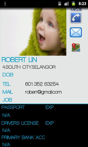 Identivity is an android app that extends the information of your contact book to include personal private information. There is no tracking on any information of the private data and is intended solely for the use of individual. This app is useful in a way where there are certain situations where we need to grab information of your/family/best friend identity from one place without having to make a call. For example, you need your dad's passport number to make a hotel booking or maybe you need to remind your dad his driving license is expiring soon.