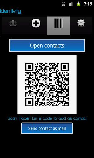 b) Navigate through your contact book to generate a QR (Quick Response) code of any contact for your friends to scan and save through your phone. You can also email QR code and contact information in mail to buzz your friend who request a contact.