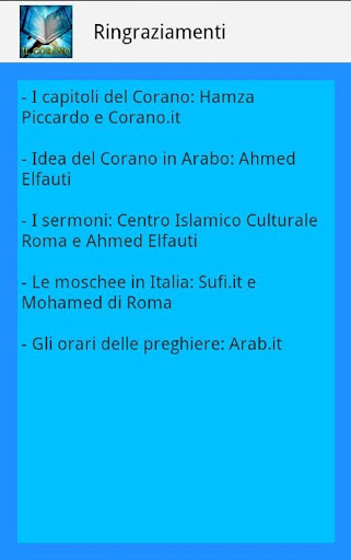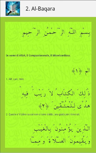 Come noto, il Corano è il libro sacro dell'Islam. Qui trovate tutti e i suoi 114 capitoli(sura) tradotti in italiano. La traduzione è a cura di Hamnza Piccardo ed è disponibile anche sul sito Corano.it