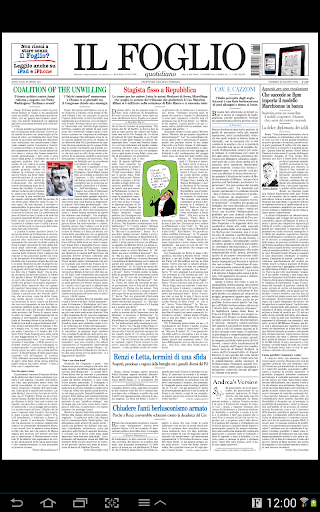 Il Foglio, poche pagine per tanti contenuti. Approfondimenti, news analysis, ritratti, opinioni pesanti come l'Elefantino che lo dirige, Giuliano Ferrara. Ogni sabato un inserto di dodici pagine con grandi firme e foto d'autore. Quando ci vuole, si pubblicano libri. Il giornale più sexy in circolazione.