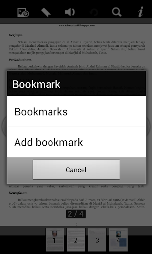 -Every page has its small thumbnail which is listed bottom horizontally on the buttons -"Previous" and "Next” or only leftward or rightward arrows.