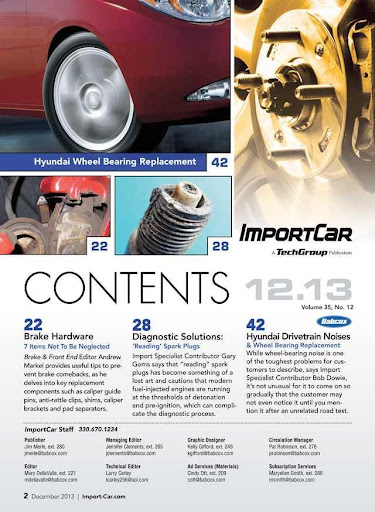 ImportCar has been informing and influencing the import vehicle repair specialist since 1979, helping its readers accomplish both profitable and professional import vehicle repairs. For 34 years, ImportCar has been a trusted, expert source for technical information on import vehicles. Within the pages of every issue, diagnostic, troubleshooting and repair information has helped its loyal readers service imports with greater precision and accuracy, and kept them up-to-date on emerging service technologies.