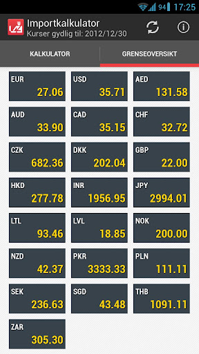 Nyhet! Inkluderer nå også en grenseoversikt. Grenseoversikten viser en kjapp oversikt over tollgrensen i de tilgjengelige valutaene.