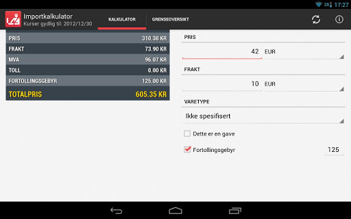 keywords: tollkalkulator toll customs norwegian norsk tollvesen tollvesenet norge norway calculator kalkulator valuta currency kwarkbit import importkalkulator handle varer internett internet