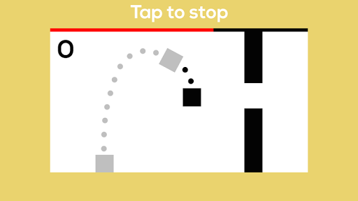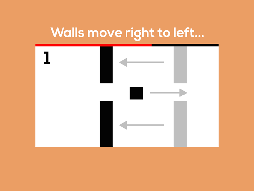 -Once the Square is aligned with the gap, tap the screen again while the block is in the air to freeze it in place and the wall will shoot across the screen. If you aren't aligned with the gap, you lose!