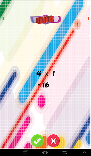 The Impossible Math game is a fun math game that can make you go crazy. It's so fun and easy to play but very hard to master. It's so simple, just look at the basic math problem and answer presented and answer if it's right or wrong. Tap the "check" button if the answer is right and tap the "x" button if the answer is wrong. Sounds simple right? Wrong! The real challenge is how fast can you solve these equations and determine if the answers are right or wrong?