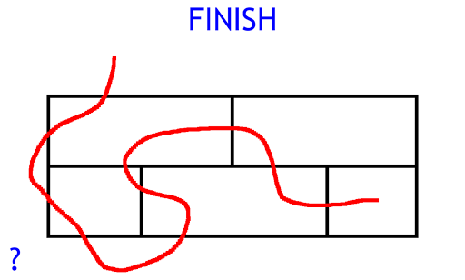 The rules are simple. Draw a continuous line that nicely crosses all walls. But one wall can only be crossed once.