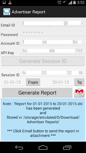 Once you click on 'Generate Report' button it generates a report and save in .xls format in your storage under Downloads, Advertiser Reports folder for Advertiser and Publisher Reports for Publishers.