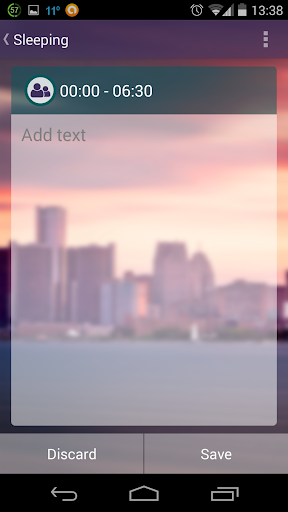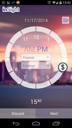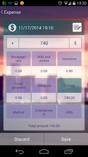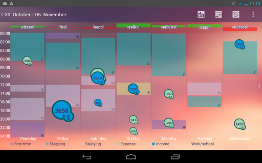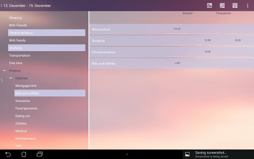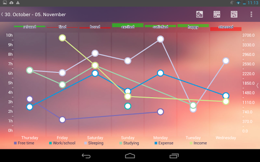 Application user can record his feelings and thoughts as well as events and actions in which he had participated in, through three categories - My Time, My Finances and My Mood.