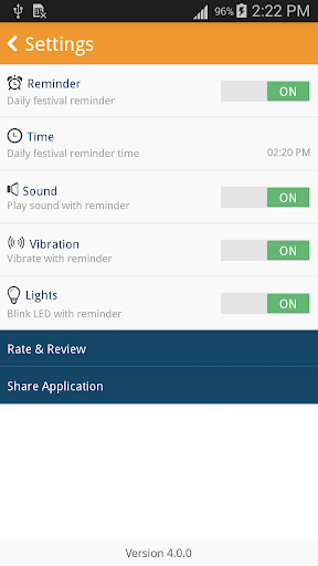 4. The application daily generates a notification to inform the user about the festivals that occur today. The application allows user to turn on/off the daily festival notification.