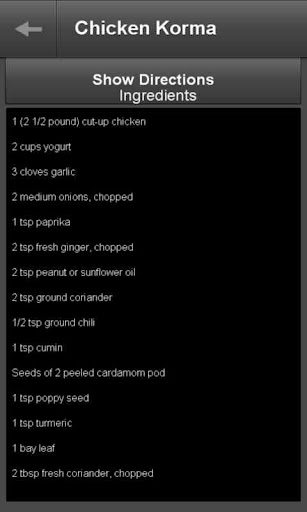 Indian Recipes displays popular recipes of India. Recipes included in the following categories: snacks, vegetarian dishes, non-vegetarian dishes, desserts, and miscellaneous recipes. All recipes incule ingredients as well as the directions to prepare the recipe. You can also search for a recipe by partial key.