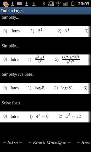 There are also useful tools embedded including an on-line calculator and an on-line equation solver. There is also an emailque button where you can ask a question about indices and logs and send it in.