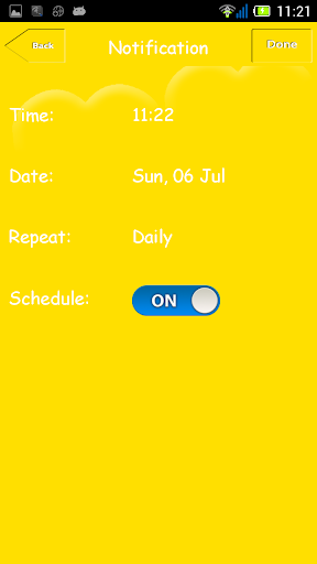 You can set separate schedules for; the Noti provided, Custom Noti and Favourite Noti