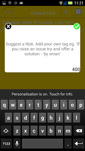 Set a schedule for when you would like to be notified of your Noti action quote so that you can work on it ie if daily set it for some time in the morning so you can work on it during the day.