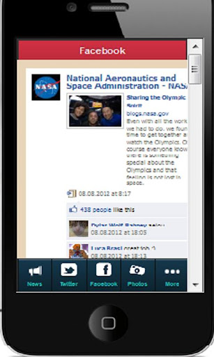 Info NASA app provides links to various NASA information sites, twitter, facebook etc