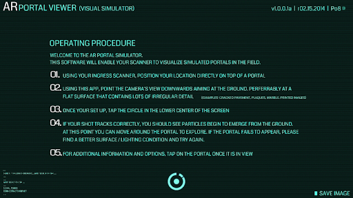 Please note: This is an unofficial, not affiliated with Niantic Labs, completely disconnected, augmented reality visual simulator. You can experience portals anywhere (real portal location is not required), but doing this while at a Ingress portal can be a more engaging experience overall.