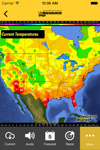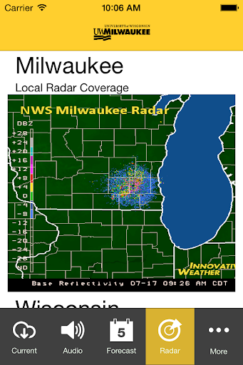 The Innovative Weather app provides in-depth weather information about Milwaukee. Features include: streaming audio forecasts, current conditions, extended forecasts, radar, and other weather maps.