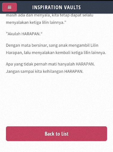 Inspiration Vaults (Gudang Inspirasi) memuat kumpulan-kumpulan cerita inspirasi terbaik yang dipilih langsung dari berbagai sumber yang terbagi kedalam berbagai macam kategori cerita dan terupdate secara berkala.
