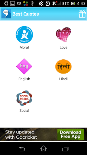 When thoughts are many and words are few, we’ll find special quotes for you. So next time when you like any of the quote given in the list you need not bother. Presenting thousands of interesting, creative, cheerful, inspirational, casual, flirty, funny quotes that fits your mood perfectly. Speak your mind the intellectual way and get continuous likes and shares. So are you ready to read your thoughts in our words? Download this app and get the most extensive and entertaining collection of Whatsapp quotes and leaves your impression not just on whatsapp but also on the minds of people who witness your wall. It’s time to redefine your Whatsapp Status Symbol!