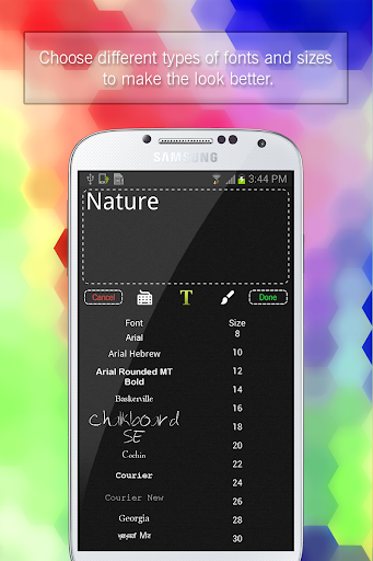 Create great picture frames with pictures from the camera, the gallery, Instagram, Facebook, Twitter, and more.