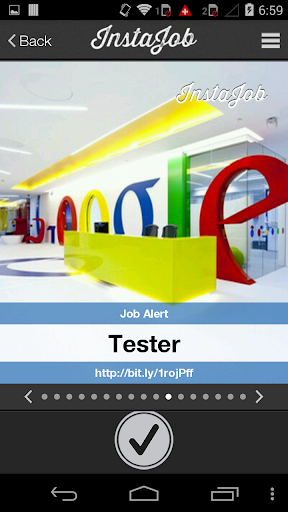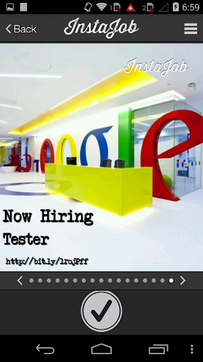 InstaJob is the only app that lets employers and recruiters create visual job ads from any picture on their phone. From the app home screen just type your career site URL, enter a job title, then take a picture or choose one from your gallery. InstaJob then provides you with several "We're Hiring" filters that overlay your job info on top of the picture. When finished safe it across your various social media profiles to help drive traffic to your site and make your job tweets more engaging.