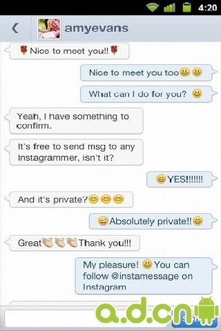 《InstaMessage聊天工具 InstaMessage》是一款专为 Instagram 用户量身打造的实时聊天工具!有时候在InstaMessage上看到好看惊艳的照片我们不禁要“赞”或者评论一下。现在有了InstaMessage! 你就可以跟照片的主人开始私密在线聊天啦!打开 InstaMessage 无需注册,只要您拥有Instagram帐号,即可马上开始使用该应用,你可以跟任何Instagrammers,包括你的朋友甚至是陌生人私信互通或实 时私密聊天。强大的智能引擎为您推荐更加优质的InstaMessage用户,你还可以按ID搜索任意一位您感兴趣的 Instagram 用户,即时开始和他聊天。