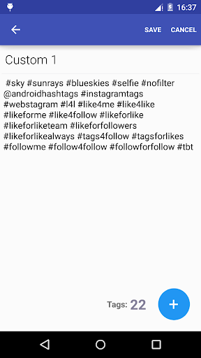 When you open the application you already have what you need most often : the most popular tags, tags for having more followers and Custom 1!