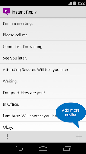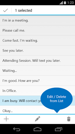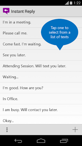 Instant Reply lets you store a list of messages which you can send as reply on a single tap.