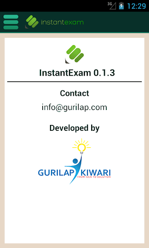 InstantExam adalah aplikasi yang membantu pengajar dan institusi untuk membuat ujian dan memberikannya kepada peserta tes di perangkat mobile (smartphone atau tablet). Pembuat ujian bisa membuat ujian secara online dengan menggunakan aplikasi web InstantExam melalui browser komputer.