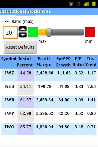 the same high quality stocks. Screen stocks for percentage held by institutions, net profit, 5 year EPS