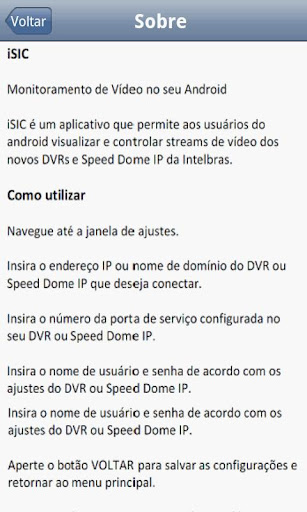 Intelbras iSIC é um aplicativo que permite usuários do sistema operacional Android visualizar e controlar streams de vídeo dos novos DVRs e Speed Dome IP da Intelbras.