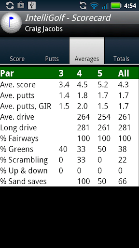 With IntelliGolf you can track virtually all of your shots quickly and easily including your Drives, Fairway 1, Fairway 2, Approach, Chip, 1st Putt and 2nd Putt for every hole. Simply tap on IntelliGolf's shot tracking boxes (e.g. Fairway/green, Left, Right, Long, or Short) and then let our embedded IntelliGPS technology determine your shot distance for you. It's easy with IntelliGolf!