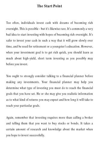 -You will also be exposed to plenty of highly effective methods for getting money fast through short and long term investments.