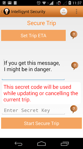 Allows user to have a secure trip. At the start of a trip, user sets up the trip ETA ( Expected Time of Arrival ) on Intelligynt (either on the website intelligynt.com or using the free mobile app ), and we'll note your expected time of arrival. If you don't check in before the ETA, we'll alert your emergency contact that you set up ahead of time via SMS and Email. Of course, you can always extend your ETA or check in early.