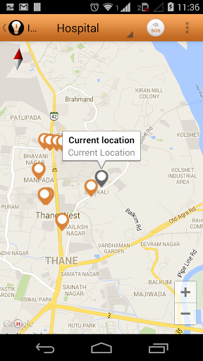 Allows user to view nearby places of interest on a map, such as hospitals,banks, atms, police station etc which are displayed on google map with address and distance from current location.