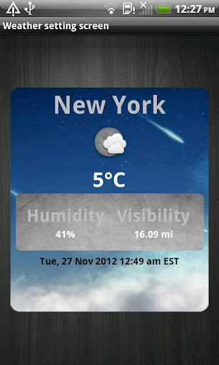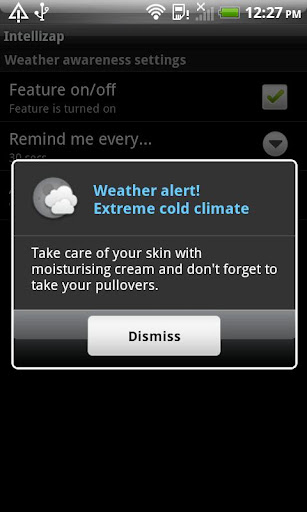 1. Weather Awareness: This feature aims at automatically retrieving the weather information and suggesting precautions to be taken in terms of apparels to be worn for the current weather condition at that particular location. There is a provision for the user to set the time interval at which the alert should be shown. Also there is a provision for the user to know the weather conditions in other cities by entering the name of the city using the UI provided in the application.