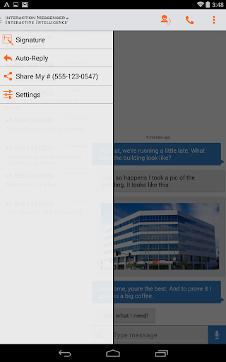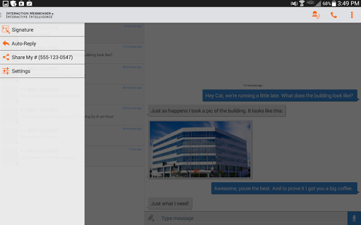 Use this app to connect to the service and send unlimited SMS between messenger clients available for multiple platforms. Send and receive text, picture and voice clips to and from multiple Interaction Messenger clients. Please contact your Enterprise IT Administrator for gaining account access to Interaction Messenger.