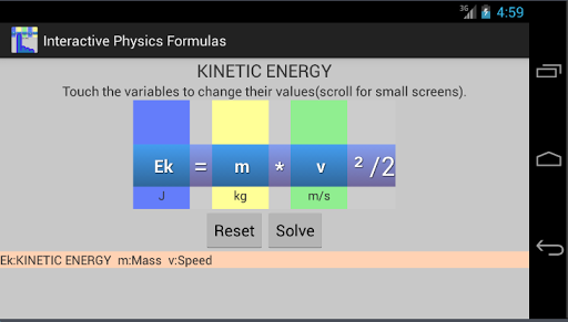 Interactive Physics PRO is ideal for students and graduates, you will find a variety of useful formulas and tools for your daily calculus, you can enter a value by touch and solve any variable of the equation, the interactive feature of the formulas makes it easy to avoid typing or human errors.