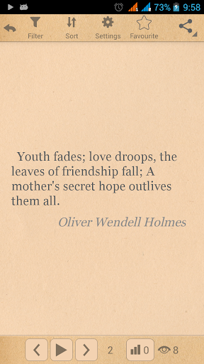 Update, able to assess and share quotes, search, choice of several categories or authors, automatic paging and much more for your convenience.