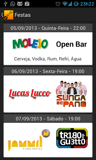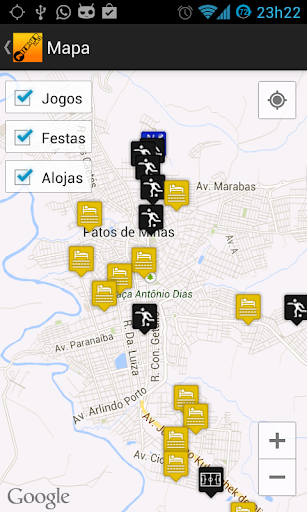 * Mapa com locais úteis (jogos, festas, alojamentos)