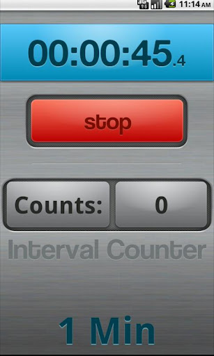 This app counts upwards and alerts the used at pre-determined intervals with a 2 seconds vibrate, as well as counting the number of alerts.