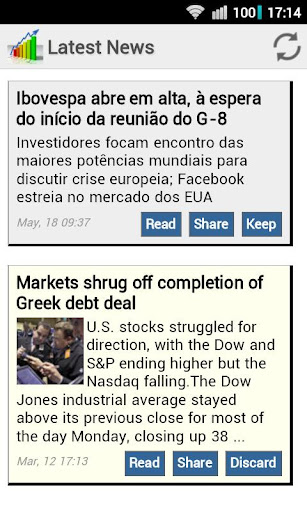 ★ A built-in news aggregator downloads and filters only the news that are relevant to your portfolio. Several channels like CNN, Reuters and Yahoo! Finance are provided, and you can easily add more from any RSS feed.